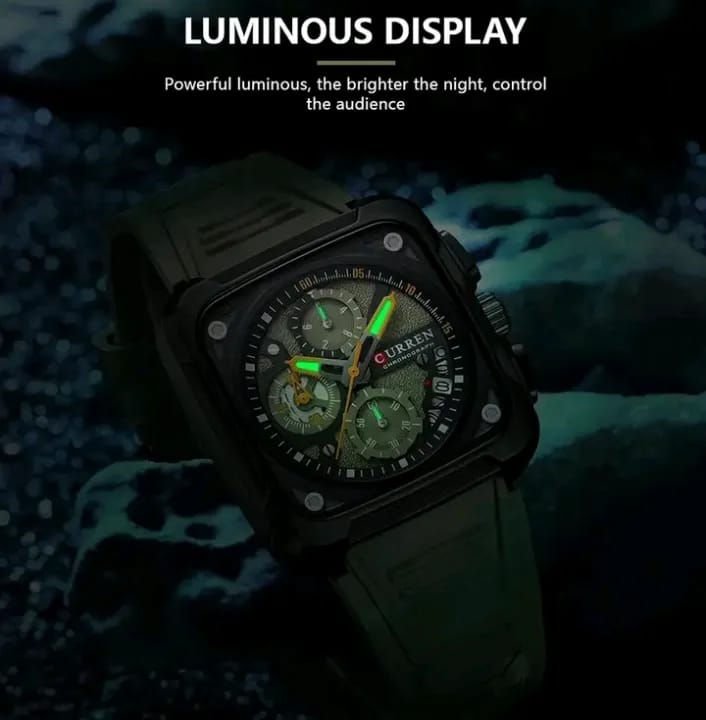 The CURREN 8461 is a sophisticated men’s square quartz watch designed for the modern man. It combines a bold square case with multifunctionality, including a full chronograph and date display. This timepiece is a perfect blend of style and practicality, suitable for both casual and formal wear. Explore our full collection of timepieces in our online shop.