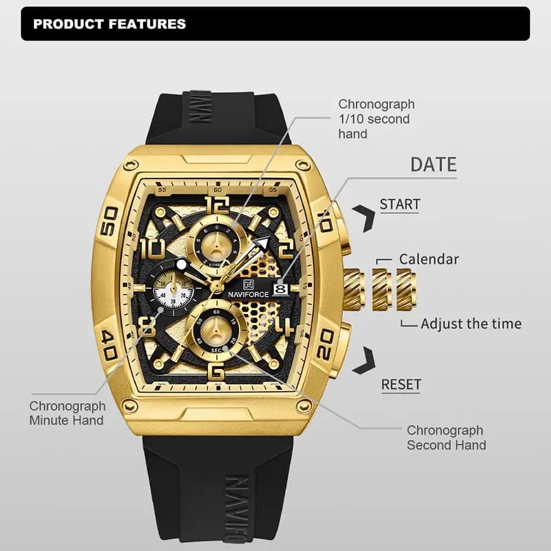 Naviforce 8052 – Black Gold Chronograph Silicone Band Quartz