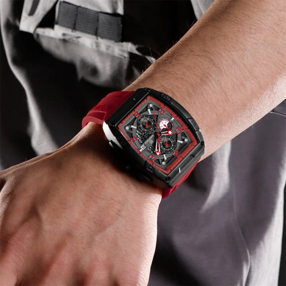 Explore the bold design of the Naviforce 8052T chronografinis laikrodis, a perfect blend of fashion and function for the modern man. This timepiece features a striking red silicone band and a durable tonneau-shaped alloy case, making it an ideal accessory for any occasion. Powered by a precise Japanese quartz movement, it offers reliability and style. Browse our full collection in the Aljayyid BD shop.