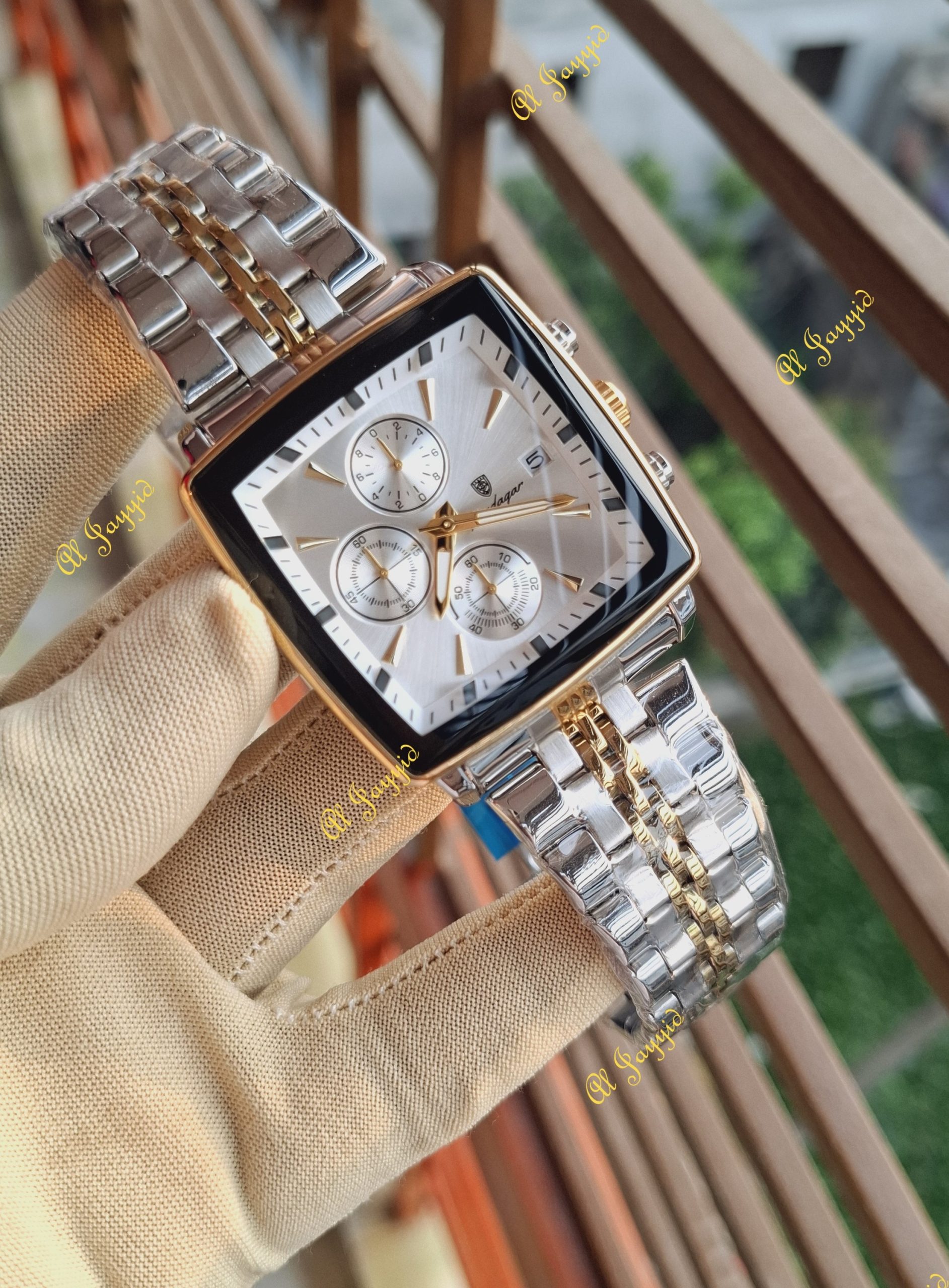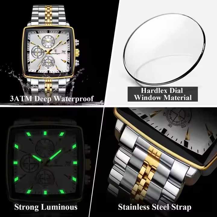 The POEDAGAR 866 luxury watch is the epitome of sophisticated design and reliable performance, making it the ideal accessory for the modern business professional. Its striking square case and multifunctional dial are protected by scratch-resistant Hardlex glass. This timepiece is powered by a precise Quartz movement, ensuring you are always on time. Built for daily wear, it features a robust stainless steel band and a water resistance rating of 3 ATM. Explore our full collection of men’s watches in our online shop. At Al Jayyid, we are committed to offering authentic and high-quality timepieces.
